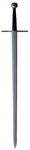 ![]() | Das einhändige Schwert ist neben dem Dolch oder Messer die wohl älteste Blankwaffe. Die Gesamtlänge bewegt sich zwischen 90 und 110 cm. Hier hat, wie der Name schon sagt, ausschließlich eine Hand auf dem Griff Platz. In der Regel führte man mit dem Einhänder einen Schild, welcher sehr unterschiedlich ausfiel - je nach Umfeld des Kampfs. Prinzipiell waren Schilde im Zweikampf eher kleiner als die Varianten in der Schlacht. Der berümte Vertreter dieser "Fechtschilde" ist der sogenannte Buckler.